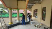 Sambut Ramadan, Polairud Polda Malut dan Masyarakat Gotong Royong Bersihkan Masjid