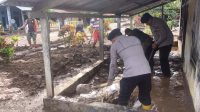 Pasca Bencana Banjir, Unit Siaga SAR Sat Brimob Polda Maluku Utara Bersama Tim Gabungan dan Warga Bersihkan Sisa Material Banjir di Desa Doitia