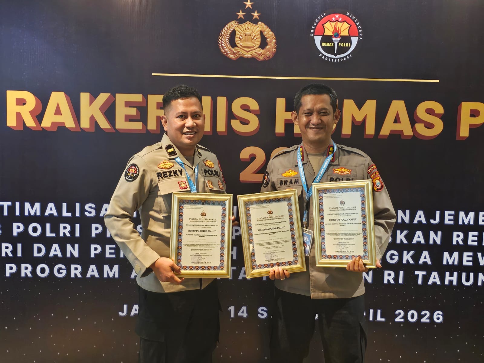 Bidang Hubungan Masyarakat (Bidhumas) Kepolisian Daerah Maluku Utara kembali mencatatkan prestasi membanggakan di kancah nasional dalam Rapat Kerja Teknis (Rakernis) Humas Polri Tahun 2026 yang diselenggarakan di Jakarta, pada Rabu (15/4).