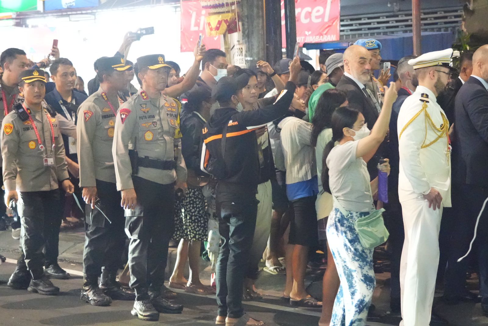 Kapolda Bali yang pada saat itu melakukan pengawalan rute, langsung mendampingi Macron yang berjalan kaki dari pintu keluar GWK untuk menyapa warga sepanjang Jalan Raya Uluwatu. Antusiasme warga Pulau Dewata yang pada saat itu berada di jalan langsung mengerubungi orang nomor satu di Prancis.