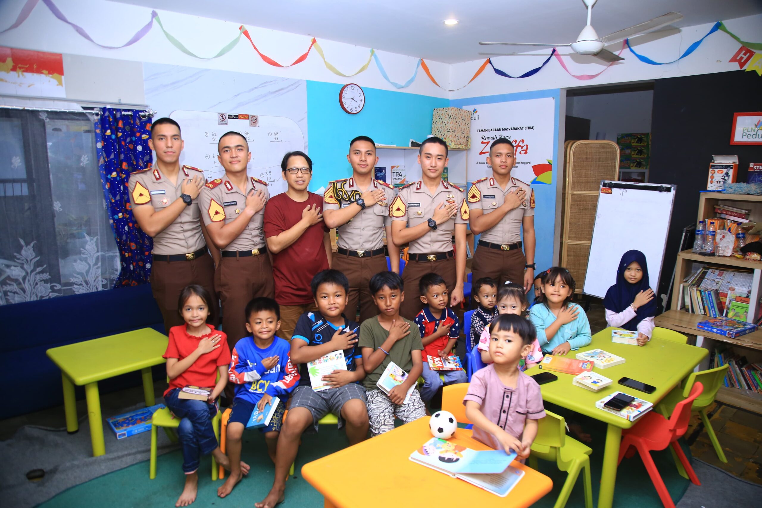 Tebet. Rumah Baca Zhaffa bersama lima taruna Akpol menggelar kegiatan belajar-mengajar bagi anak jalanan di daerah Manggarai, Tebet, Jakarta Selatan. Kegiatan itu turut dihadiri Yudy Hartanto selaku Founder dari Rumah Baca Zhaffa.
