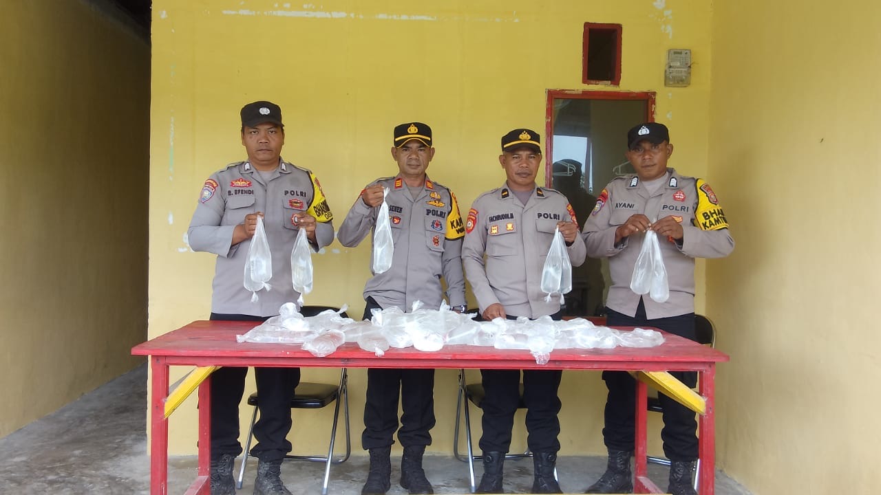 Hasil pengecekan tersebut Kapolsek berserta Personel menemukan minuman keras jenis captikus dalam kemasan sebanyak 59 kantong.