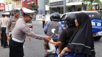 Lintas (Ditlantas) Polda Maluku Utara menggelar aksi berbagi takjil gratis di Simpang Tiga Gereja Ayam, Senin (3/3/2025). Kegiatan ini merupakan bagian dari program Polantas Peduli yang rutin dilaksanakan setiap bulan suci Ramadan. Kegiatan ini bertujuan untuk mempererat hubungan antara kepolisian dan masyarakat, sekaligus menumbuhkan semangat kebersamaan dan kepedulian sosial. Kabidhumas Polda Malut, Kombes Pol. Bambang Suharyono, S.I.K., M.H., menyampaikan bahwa dalam aksi ini, petugas tidak hanya membagikan takjil kepada pengendara roda dua, roda empat, serta warga sekitar, tetapi juga menyampaikan edukasi tentang pentingnya keselamatan berlalu lintas. “Kami ingin mengajak masyarakat untuk lebih sadar dan tertib dalam berkendara, demi keselamatan bersama di jalan raya,” ujar Kabidhumas. Melalui aksi kepedulian ini, Ditlantas Polda Malut berharap semangat Ramadan semakin memperkuat sinergi antara Polri dan masyarakat dalam menciptakan lingkungan yang harmonis. Selain itu, kegiatan ini juga menjadi momentum untuk menanamkan kesadaran akan pentingnya keselamatan berlalu lintas, sehingga dapat mewujudkan jalan raya yang lebih aman, tertib, dan nyaman bagi semua pengguna jalan.