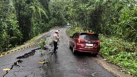 Polres Halmahera Timur Sigap Amankan Jalan Lintas Halmahera yang Longsor Akibat Hujan Deras