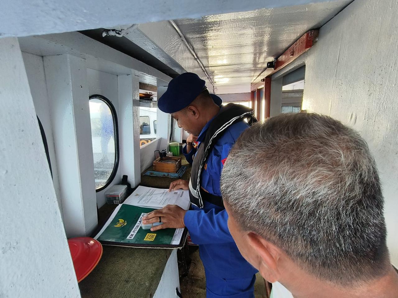Pemeriksaan dilakukan secara menyeluruh, meliputi kelengkapan dokumen kapal, alat navigasi, serta perlengkapan keselamatan berlayar. Hasil pemeriksaan menunjukkan seluruh dokumen dan peralatan kapal dalam kondisi lengkap dan sesuai ketentuan.