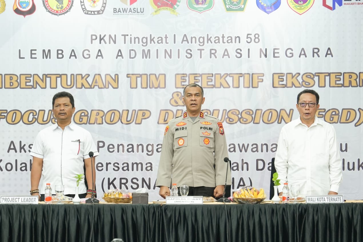 Kegiatan yang digagas Direktorat Intelkam Polda Malut mengusung proyek perubahan “akselerasi penanganan kerawanan pemilu melalui kolaborasi pemerintah daerah yang di branding dengan akronim krsna kieraha”