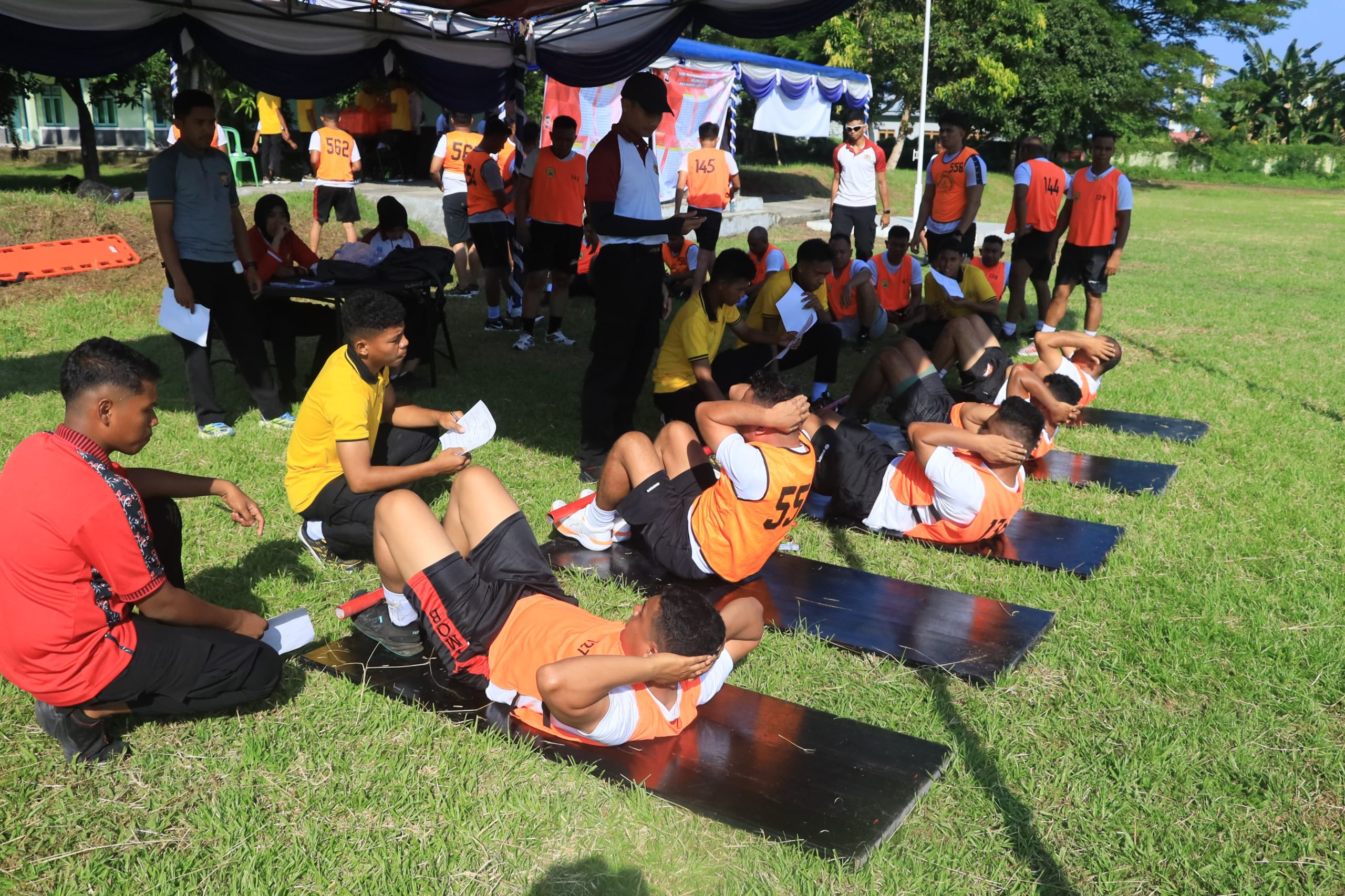 “Uji kesamaptaan ini meliputi lari 12 menit, pull up, sit up, push up, shuttle run, serta bela diri Polri. Hasilnya diumumkan langsung setelah pelaksanaan,” kata kabidhumas.