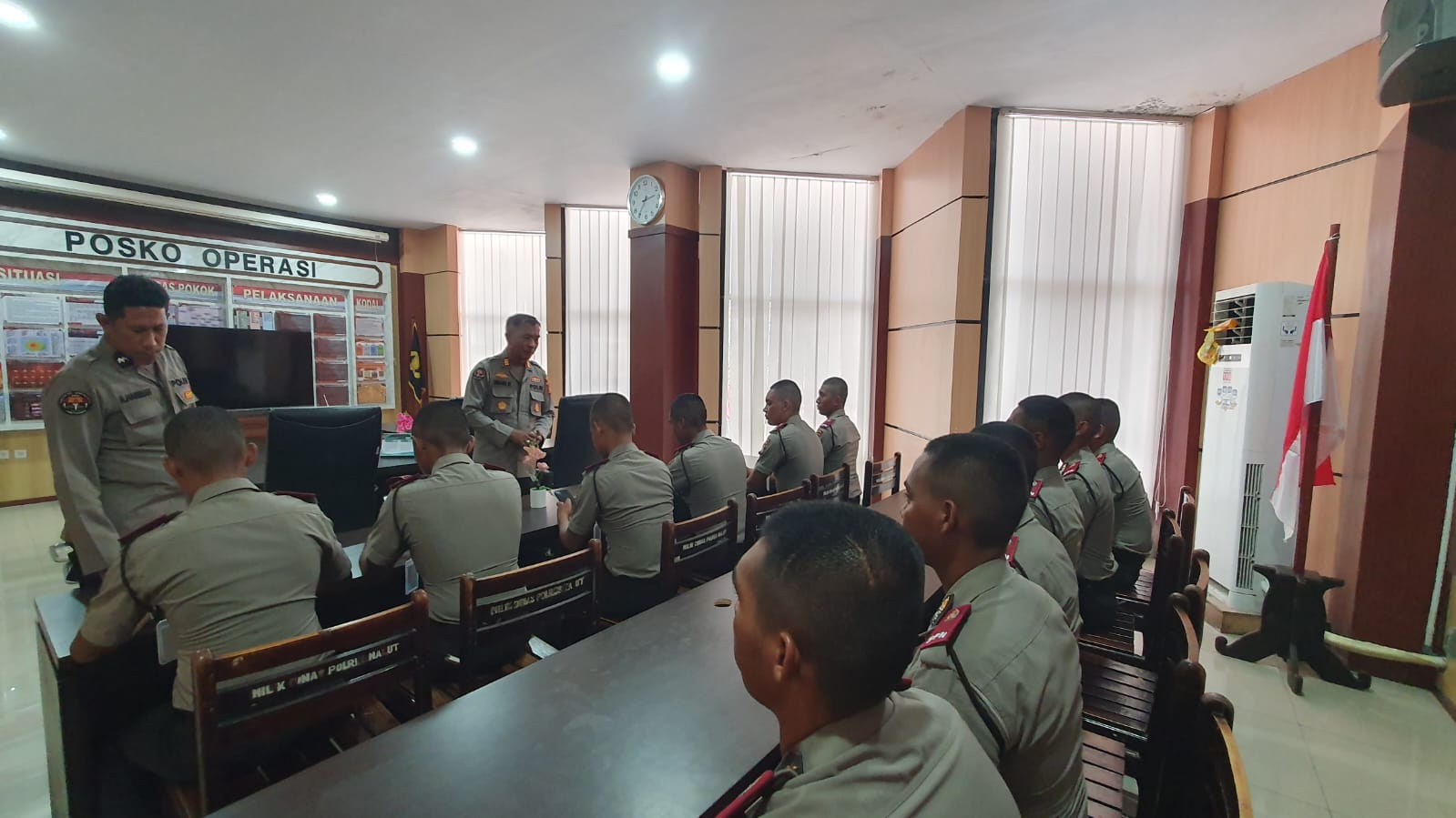 Dalam upaya menanamkan pemahaman tentang pentingnya peran kehumasan di tubuh Kepolisian, Kasi Humas Polres Ternate AKP Umar Kombong, S.H., bersama Kasubsi Penmas Aipda Akbar Hariman, memberikan sosialisasi bertema “Agen Kehumasan Polri” kepada para Siswa Latihan Kerja (Latja) SPN Polda Maluku Utara yang dilaksanakan di Ruang TMCC Polres Ternate, Jumat (07/11).
