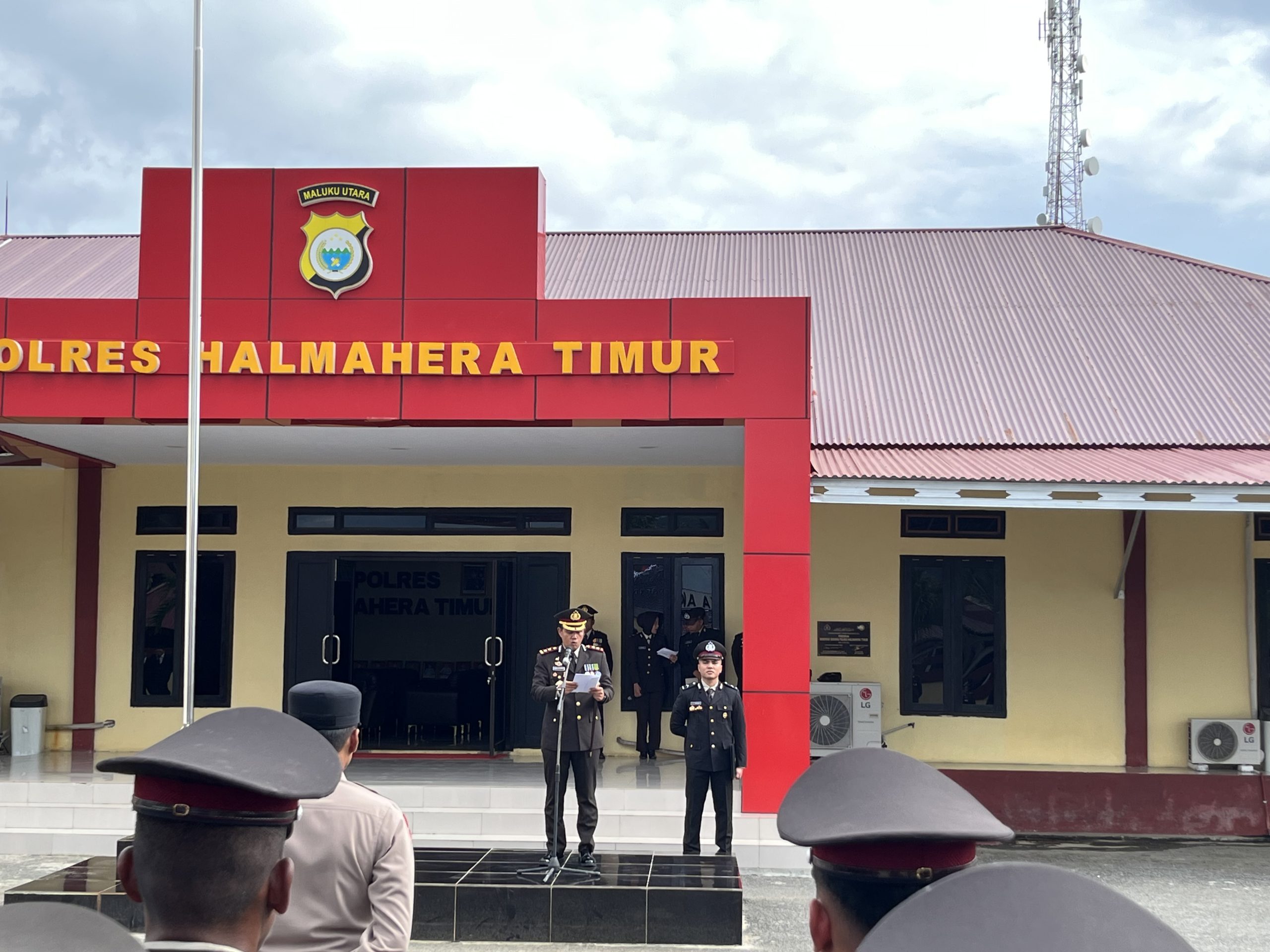 Kapolres Halmahera Timur, AKBP B. Kusuma Ardiansyah S.I.K bertindak sebagai inspektur upacara dan memimpin langsung jalannya kegiatan. Upacara tersebut diikuti oleh para pejabat utama Polres, personel Polres Halmahera Timur serta Polsek Jajaran.