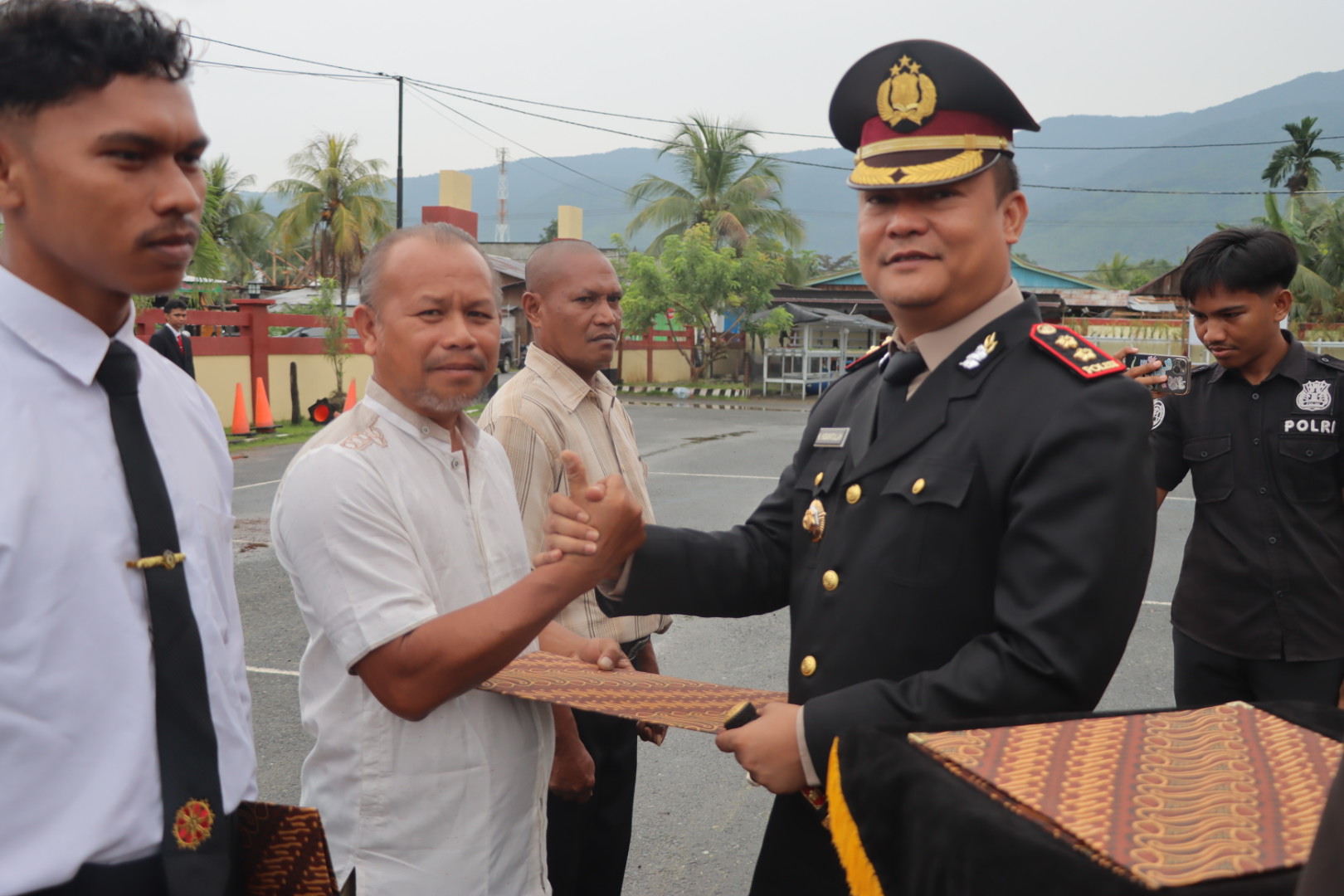 Sejumlah personel polres dan 2 Warga Masyarakat yang telah berdedikasi dalam perbaikan mako Polres Halmahera Timur dan Terlaksananya pekarangan pangan lestari Polres Halmahera Timur.