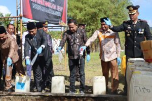 Setelah pelaksanan upacara hari Bhayangkara dilaksanakan di lanjutkan dengan Pemusnahan Miras Hasil Operasi Cipta Kondisi Polres Haltim Periode 2022- 2023 yang di buka oleh Kapolres Haltim AKBP Setyo Agus SIK.,MAP, di lanjutkan oleh Bupati Haltim Drs Ubaid Yakub S.Pd.,MPA serta di ikuti oleh PJU polres Haltim.