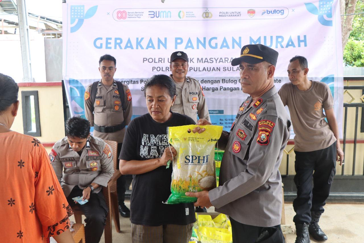 Program tersebut digelar untuk menjaga stabilitas pasokan dan harga pangan di wilayah Kabupaten Kepulauan Sula. Dalam kegiatan ini, Polres menyalurkan beras jenis SPHP kemasan 5 kilogram dengan jumlah sebanyak 200 karung.