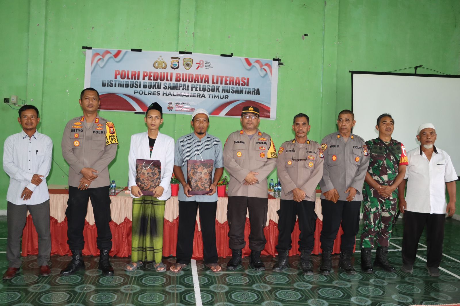 Kapolres Halmahera Timur AKBP Setyo Agus Hermawan, S.I.K., M.A.P, melalui mengatakan pendistribusian buku-buku dilaksanakan bersama jajarannya di pondok pesantren Daarul Khoirotil Mawadah Dan Pondok Pasantren Raudatul Magfurin.