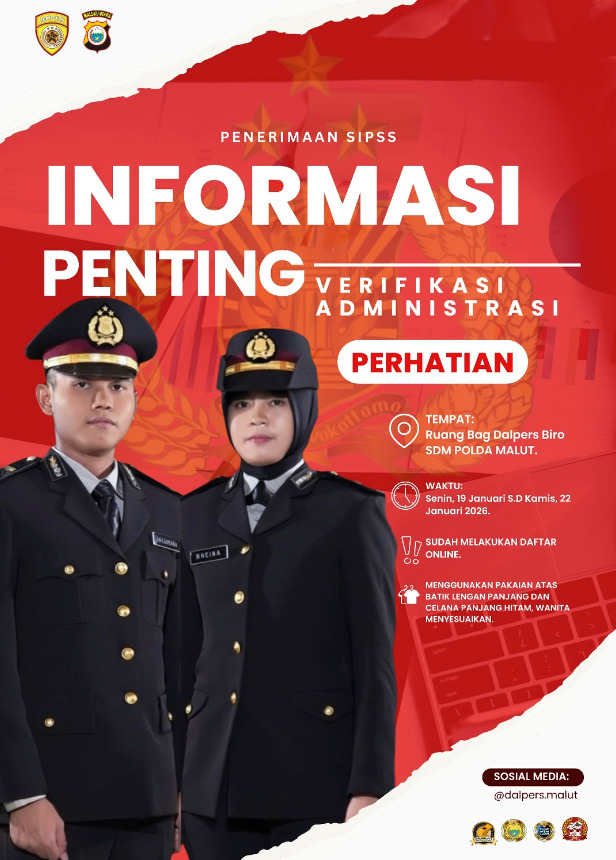 Kepolisian Negara Republik Indonesia (Polri) resmi membuka Seleksi Penerimaan Sekolah Inspektur Polisi Sumber Sarjana (SIPSS) Tahun Anggaran 2026. Pendaftaran dibuka mulai 15 hingga 22 Januari 2026, dan dapat diikuti oleh lulusan S1, S2, D-IV, hingga dokter spesialis untuk jurusan Patalogi Anatomik dan Mikrobiologi Klinik. Informasi tersebut disampaikan melalui pengumuman resmi Biro Sumber Daya Manusia (SDM) Polda Malut.