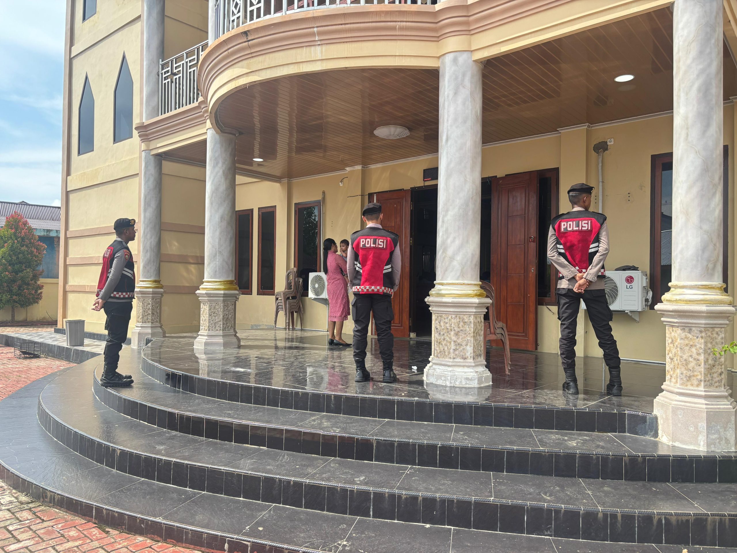 Selama kegiatan ibadah berlangsung, personel berjaga dengan sikap siaga namun tetap humanis, menyambut jamaah yang datang, membantu pengaturan arus kendaraan di sekitar lokasi, serta menjaga ketertiban.
