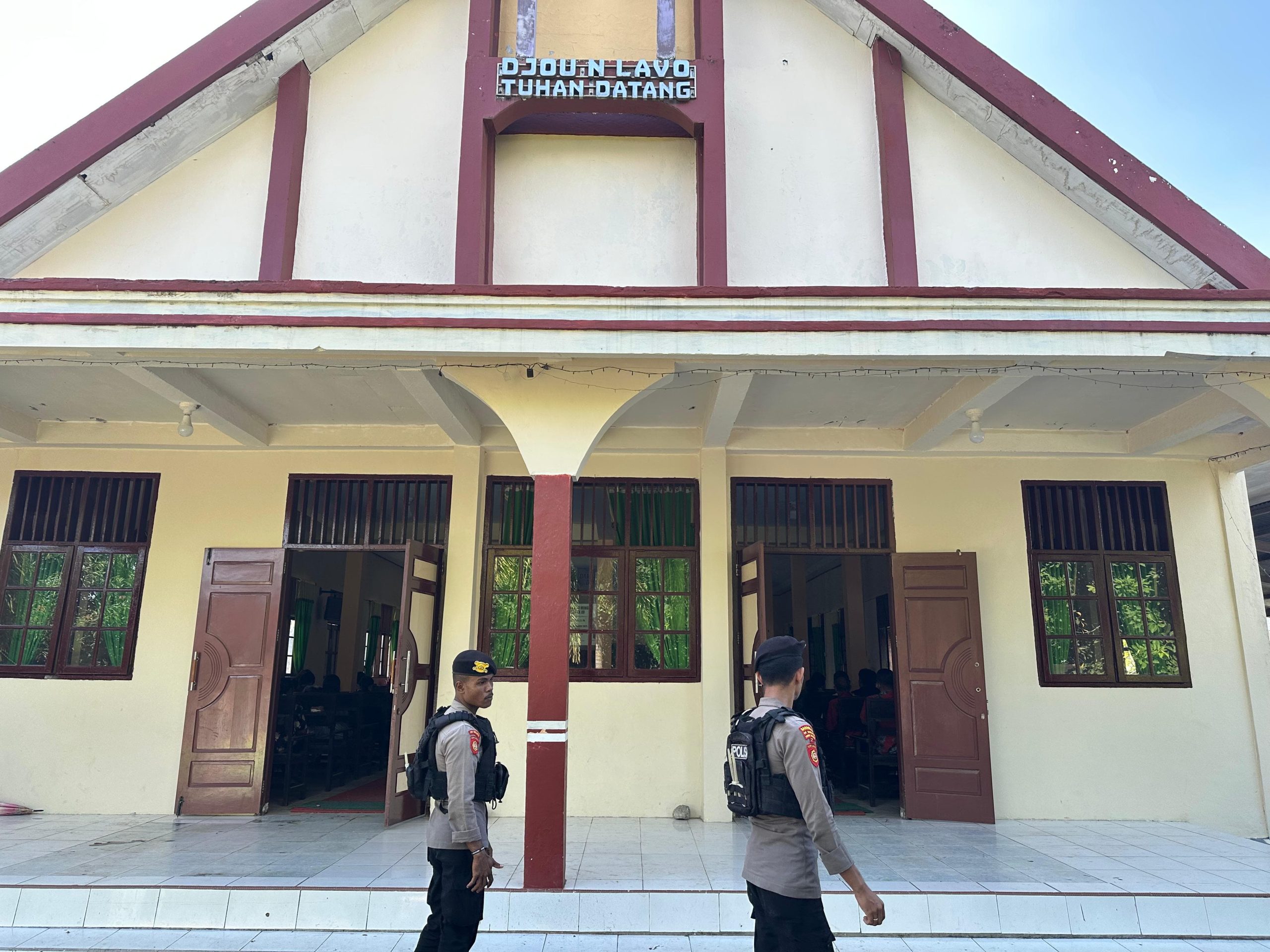 Satuan Samapta Polres Halmahera Timur melaksanakan kegiatan Pengamanan (PAM) Ibadah di beberapa gereja Kec.Maba Kab. Halmahera Timur. Minggu, (16/11/2025)