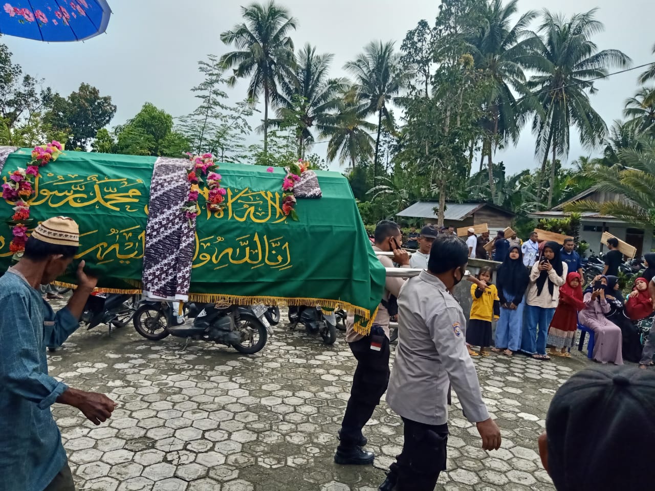 Sambang ke rumah duka, Bhabinkantibmas Halmahera Timur ikut angkat Keranda Jenasah.