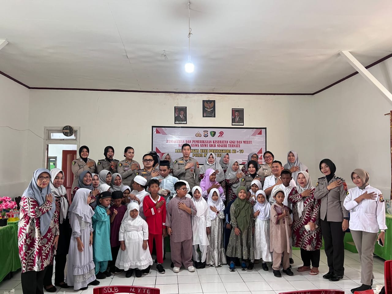 HUMAS POLDA MALUT — Bidang Kedokteran dan Kesehatan (Biddokkes) Polda Maluku Utara menggelar penyuluhan serta pemeriksaan kesehatan gigi dan mulut bagi siswa Sekolah Dasar Luar Biasa (SDLB) Negeri Ternate, Jumat, (13/6/2025).