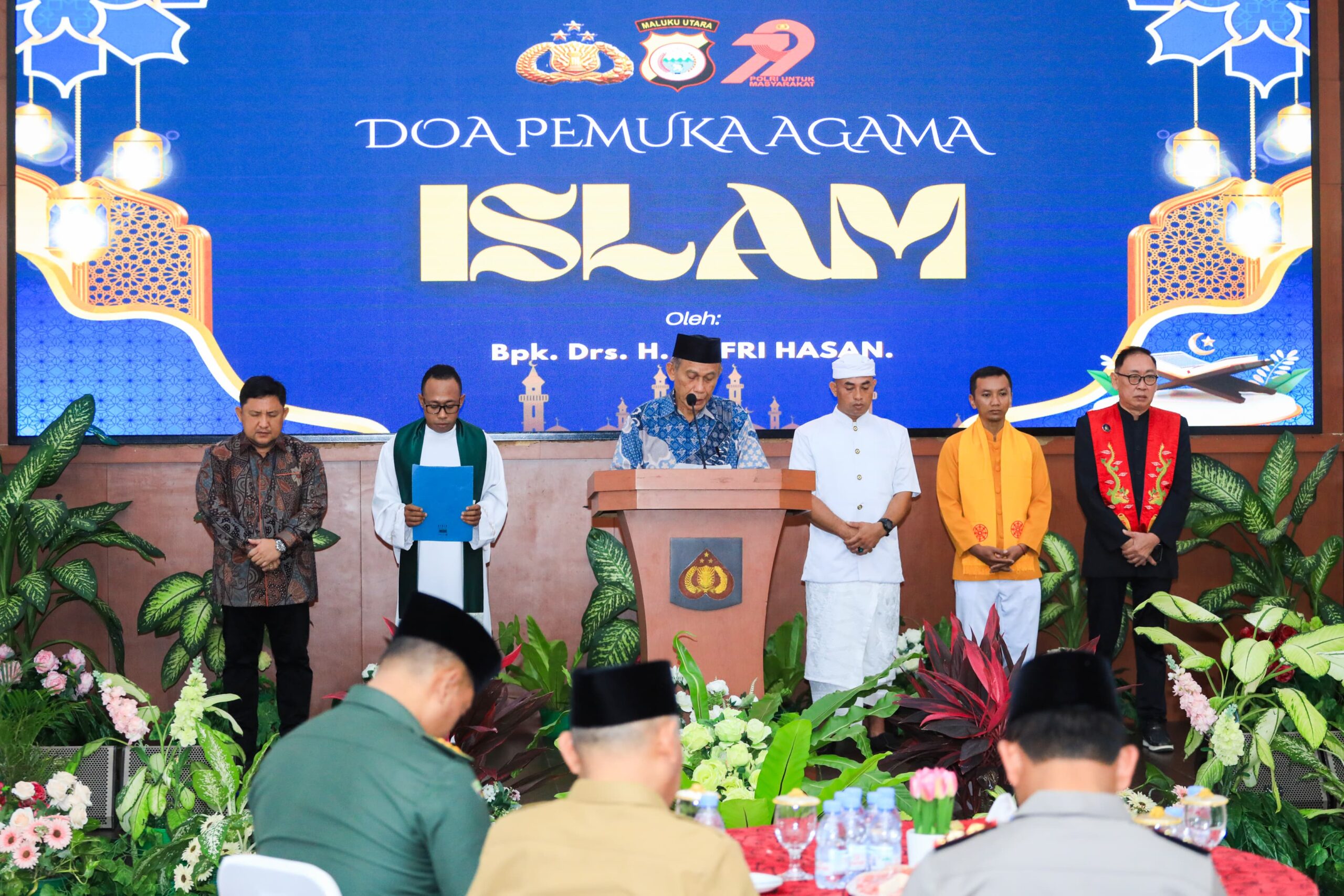 Dalam sambutannya, Kapolda Maluku Utara menekankan pentingnya momen doa bersama sebagai bentuk refleksi spiritual atas pengabdian panjang Polri kepada bangsa dan negara.