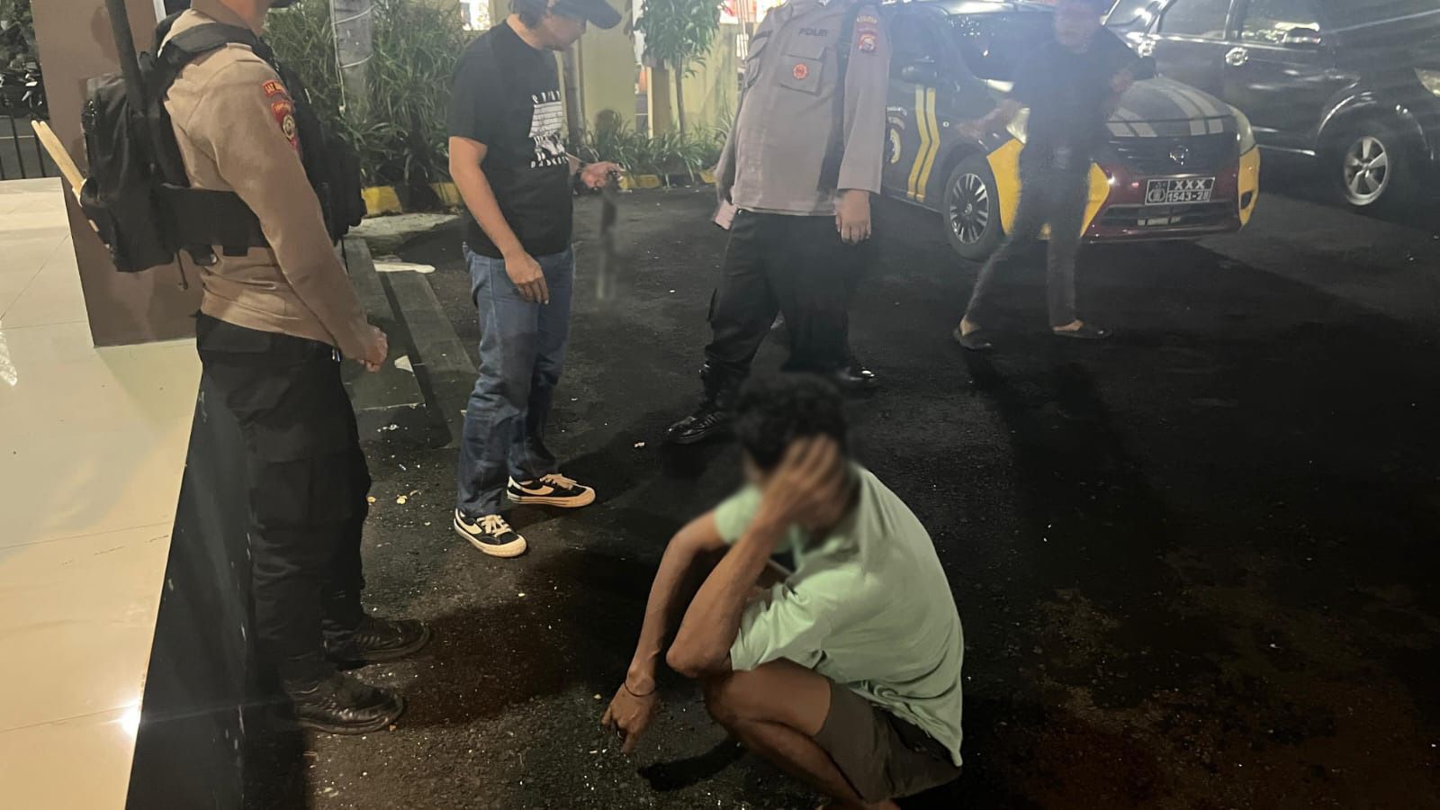 Personel Unit 2 Satuan Samapta Polres Ternate mengamankan seorang pria yang diduga melakukan pengancaman menggunakan senjata tajam saat terjadi keributan di Kelurahan Mangga Dua, Kecamatan Ternate Selatan, Minggu (18/01) malam.