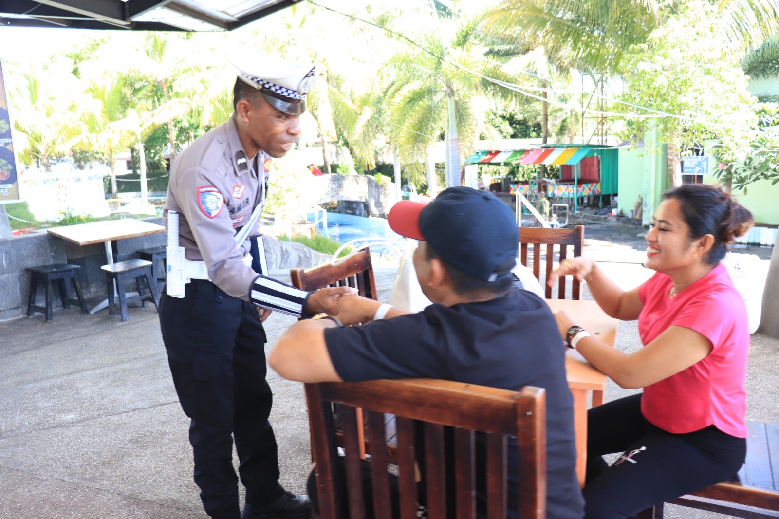 dalam kesempatan itu petugas berbincang dengan pengunjung serat menyampaikan himbauan kamtibmas, agar selalu berhati-hati dan menjaga norma-norma dan aturan yang berlaku.