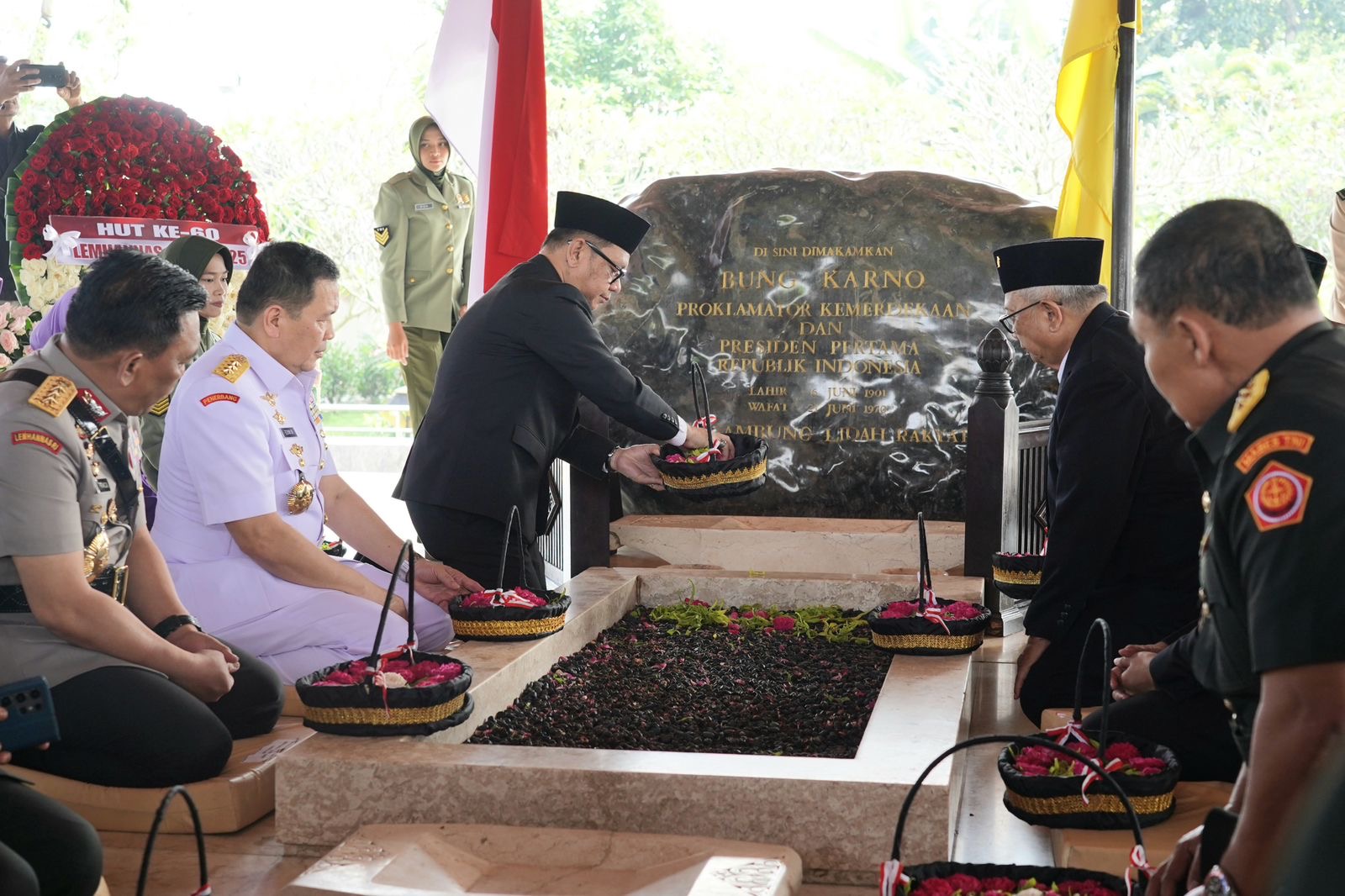 Blitar – Gubernur Lemhannas RI Dr. H. TB. Ace Hasan Syadzily, M.Si. beserta jajaran pimpinan Lemhannas RI melakukan ziarah dan tabur bunga ke Makam Bung Karno di Blitar, Jawa Timur pada Jumat (16/05). Kegiatan ini merupakan rangkaian kegiatan dalam rangka HUT ke-60 Lemhannas RI yang mengusung tema “Ketahanan Nasional Wujudkan Indonesia Maju”.