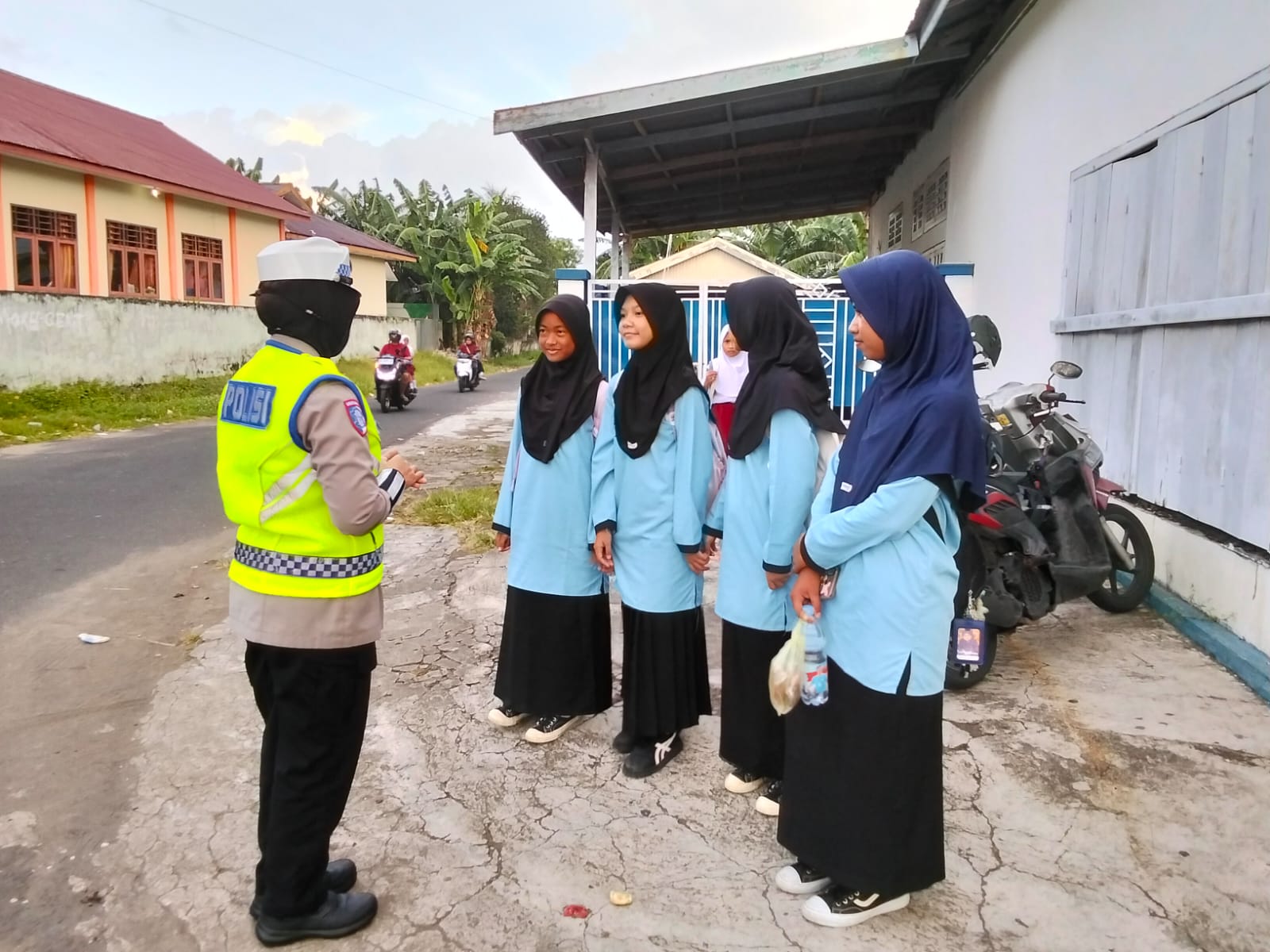 Dalam kegiatan edukatif tersebut, personel Sat Lantas memberikan pemaparan komprehensif mengenai urgensi mematuhi rambu-rambu lalu lintas dan pentingnya penggunaan helm Standar Nasional Indonesia (SNI).